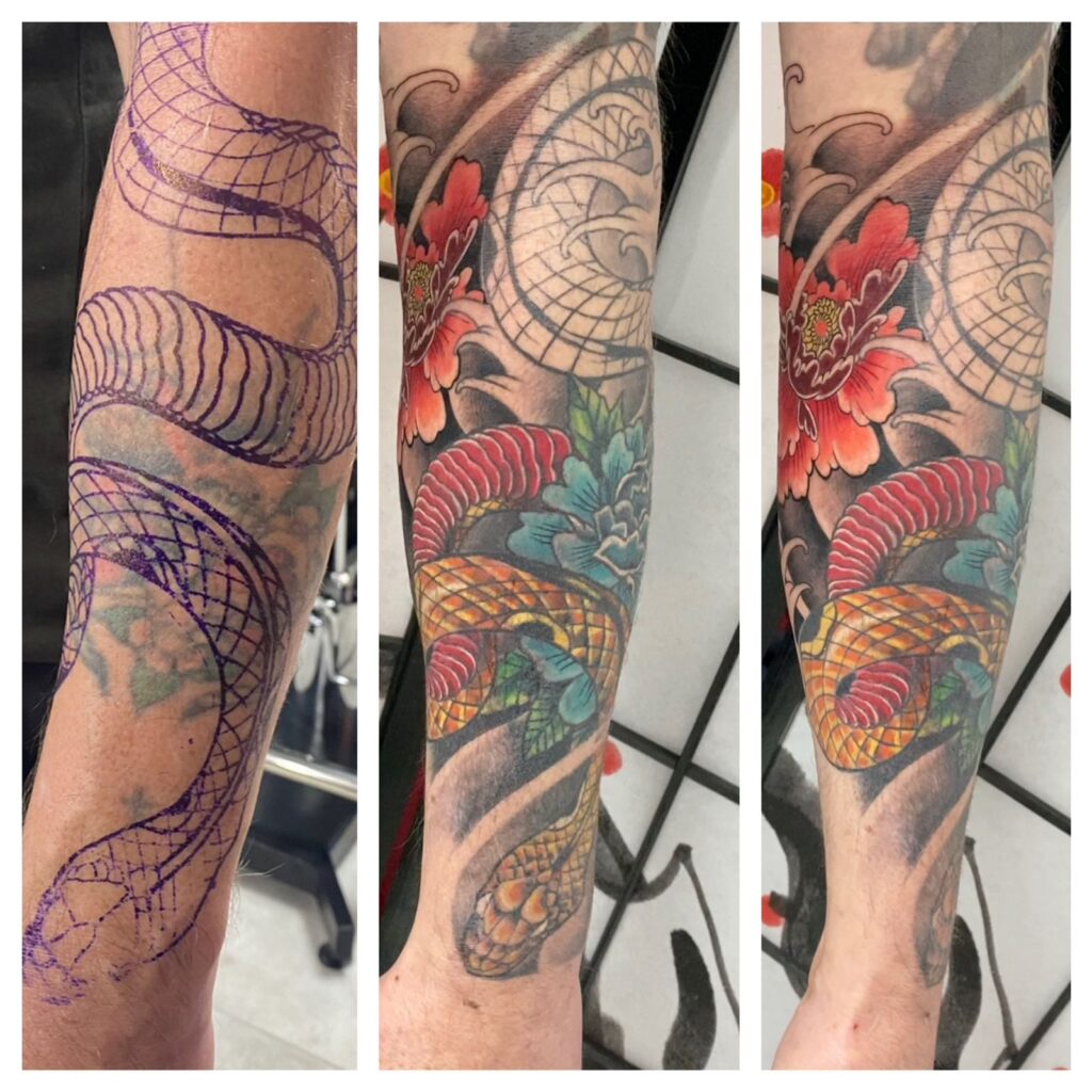 After doing an in-house apprenticeship in the final year of his studies, he began tattooing full-time in 1996.